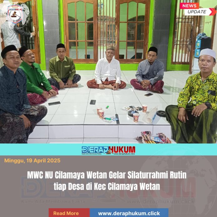 Karawang,Jawa Barat | Deraphukum.click | Jumat, 17 April 2026 Pengurus Majelis Wakil Cabang Nahdlatul Ulama (MWC NU) Kecamatan Cilamaya Wetan kembali melaksanakan kegiatan rutin berupa silaturrahmi ke tiap ranting NU di desa-desa wilayahnya. Kegiatan ini menjadi salah satu agenda penting dalam mempererat hubungan antar pengurus sekaligus memperkuat ukhuwah Islamiyah di tingkat kecamatan hingga desa.