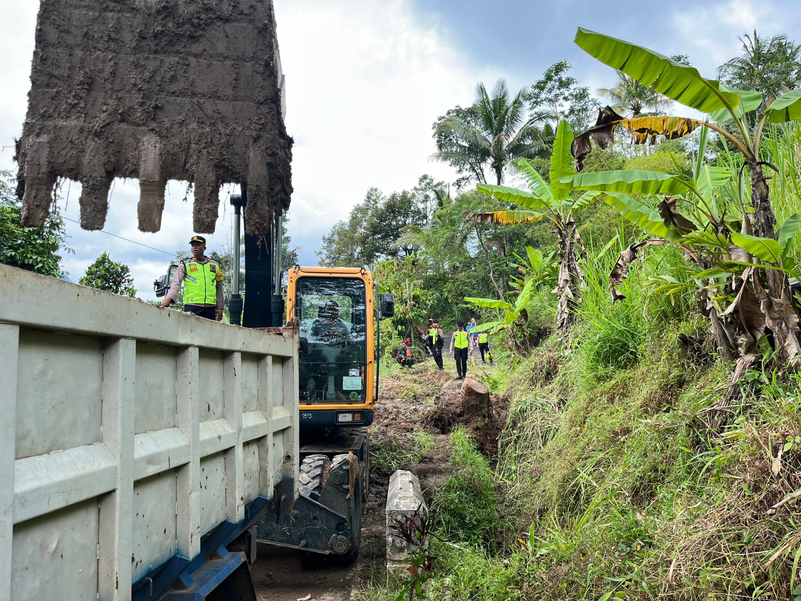 “Alhamdulillah, tidak ada korban jiwa maupun kerugian materiil dalam kejadian ini. Namun, karena kondisi tanah yang masih basah dan proses pembersihan masih berlangsung menggunakan eskavator, untuk sementara akses jalan belum bisa dilalui baik oleh kendaraan roda dua maupun roda empat,” tambahnya.