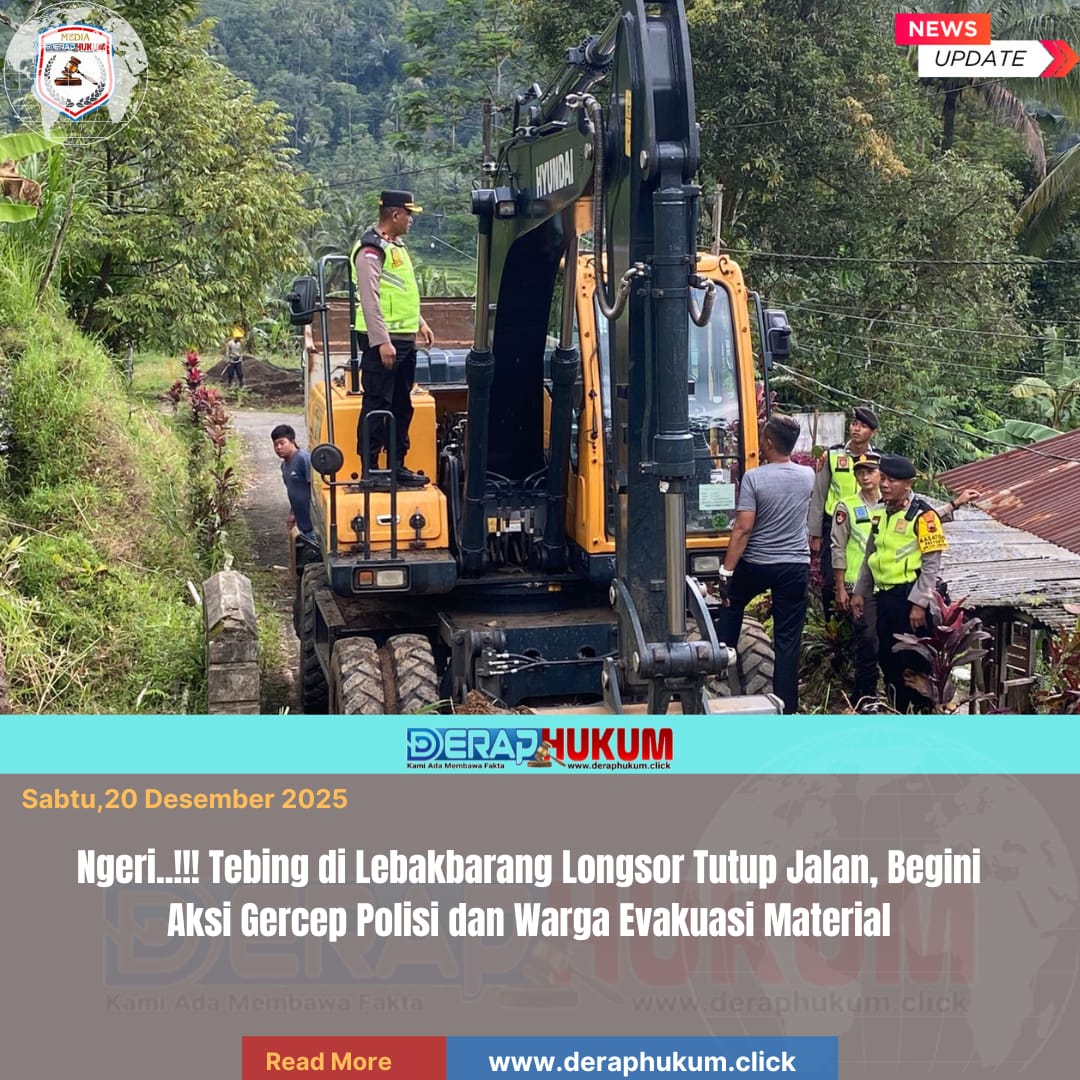 Pekalongan,Jawa Tengah | Deraphukum.click | Polres Pekalongan – Polda Jateng – Akses jalan utama yang menghubungkan Sidomulyo dan Lebakbarang di Kabupaten Pekalongan tertutup total akibat material tanah longsor. Menindaklanjuti hal tersebut, personel gabungan dari Polres Pekalongan, TNI, dan BPBD Kabupaten Pekalongan bergerak cepat melakukan pembersihan di Dukuh Makirah, Desa Sidomulyo, Sabtu (20/12/2025).