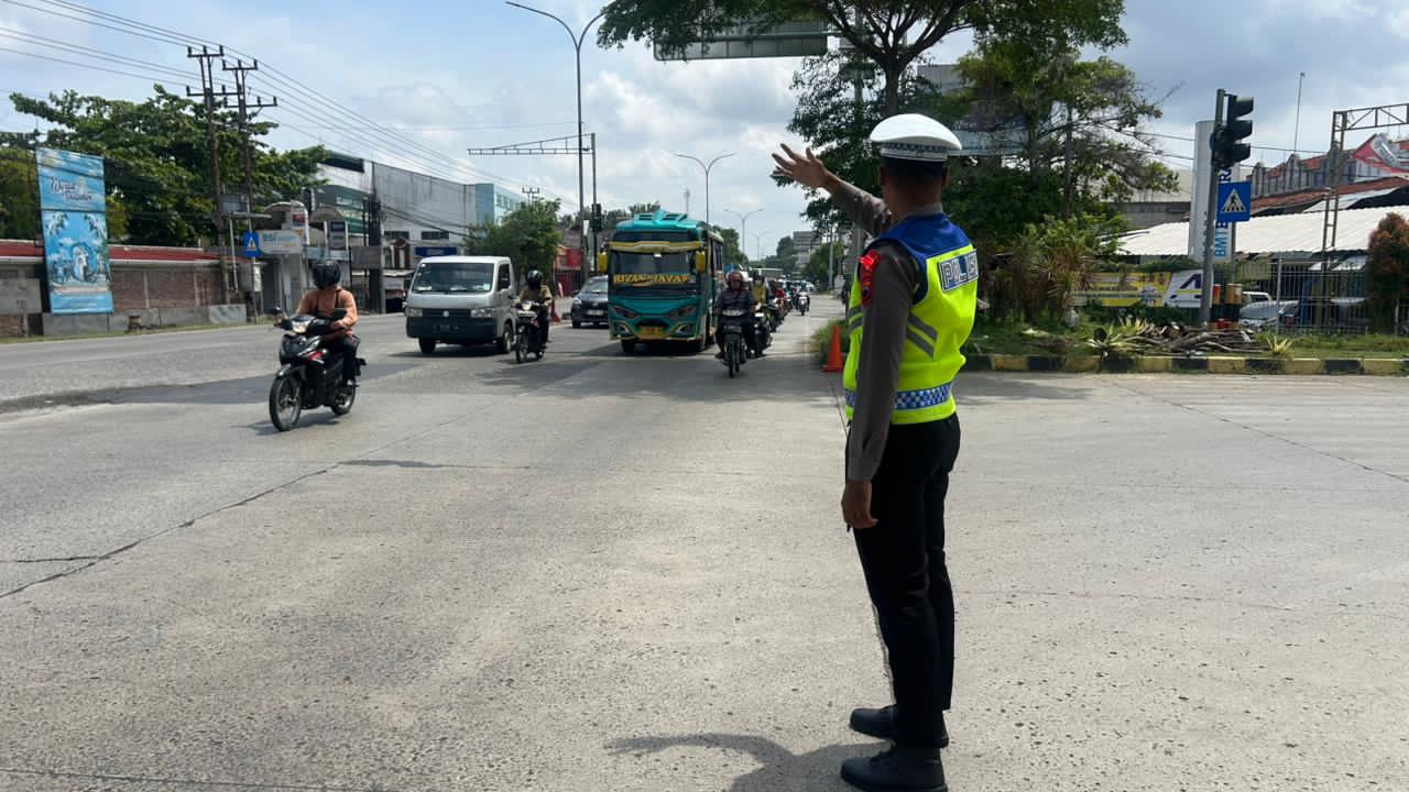 Selain patroli, petugas juga melakukan pemantauan langsung terhadap arus kendaraan serta pengaturan lalu lintas guna memastikan para pengguna jalan dapat berkendara secara aman, tertib, dan lancar.
