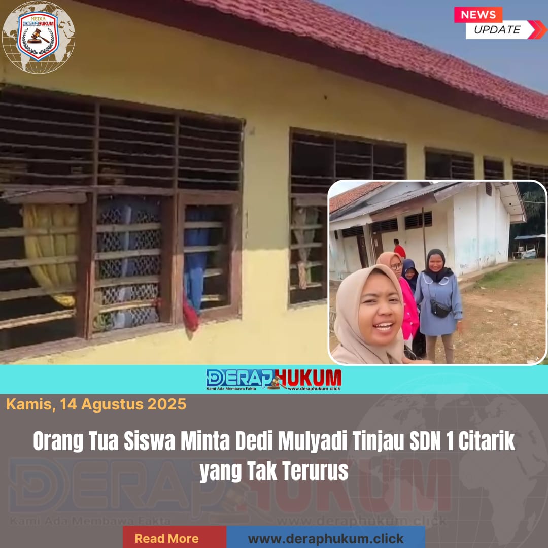 KARAWANG, JAWA BARAT | DerapHukum.Click | Sejumlah orang tua siswa mendesak Gubernur Jawa Barat, Dedi Mulyadi, untuk turun langsung meninjau kondisi SDN 1 Citarik di Kp. Tangkil, Desa Citarik, RT 01 RW 02, Kecamatan Tirtamulya, Kabupaten Karawang, yang dinilai memprihatinkan dan tak terurus.