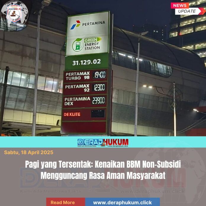 Karawang,Jawa Barat | Deraphukum.click | Pagi yang semestinya menjadi awal yang tenang untuk memulai aktivitas, mendadak berubah menjadi ruang kegelisahan kolektif. Tanpa aba-aba, tanpa sosialisasi yang terasa di akar rumput, harga BBM non-subsidi naik begitu saja.