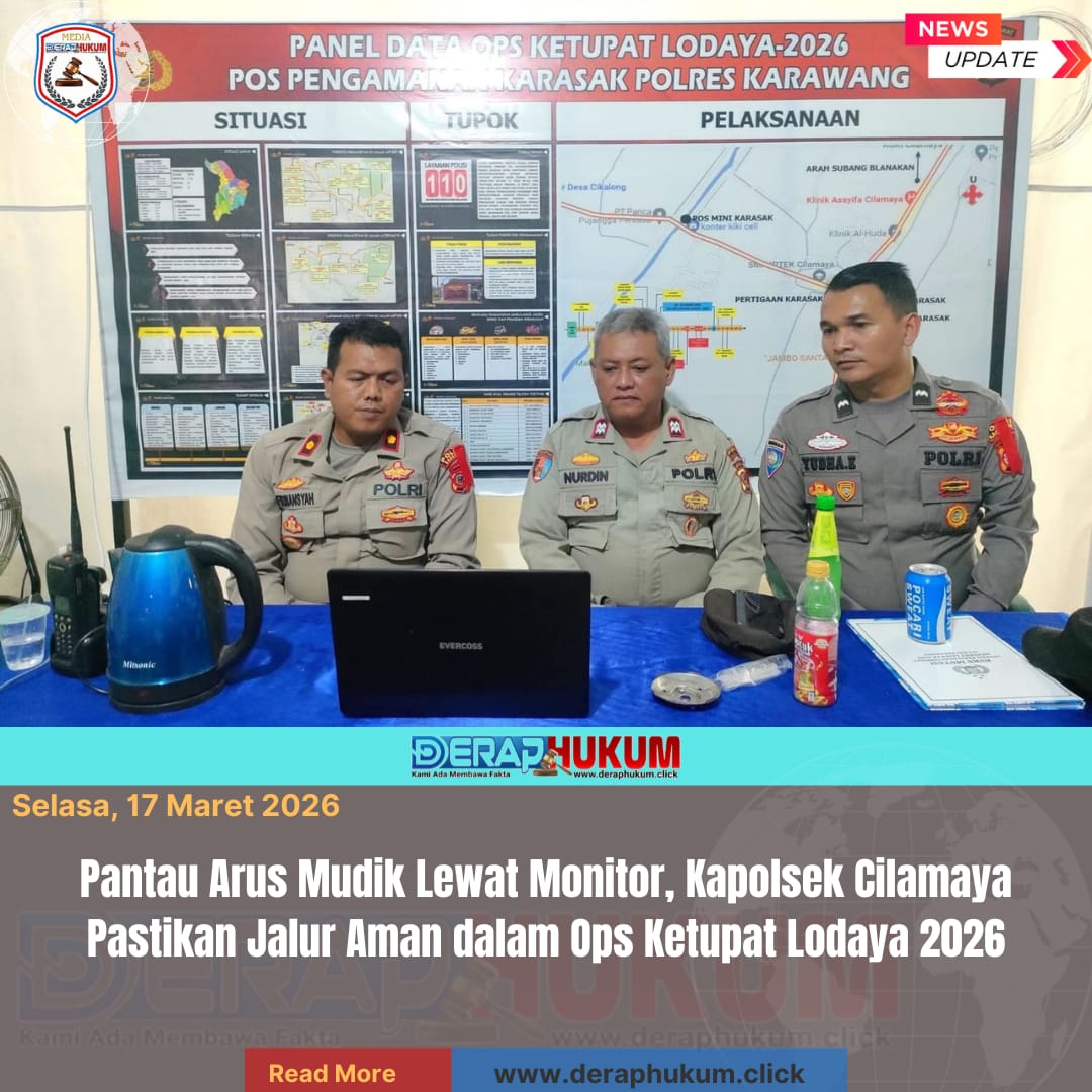 “Kami bersama anggota tetap berjaga dan memantau situasi melalui layar monitor serta laporan dari personel di lapangan. Tujuannya agar arus mudik di wilayah Cilamaya dan sekitarnya tetap aman, lancar, dan terkendali selama pelaksanaan Operasi Ketupat Lodaya 2026,” ujar Kompol Ade Firmansyah.