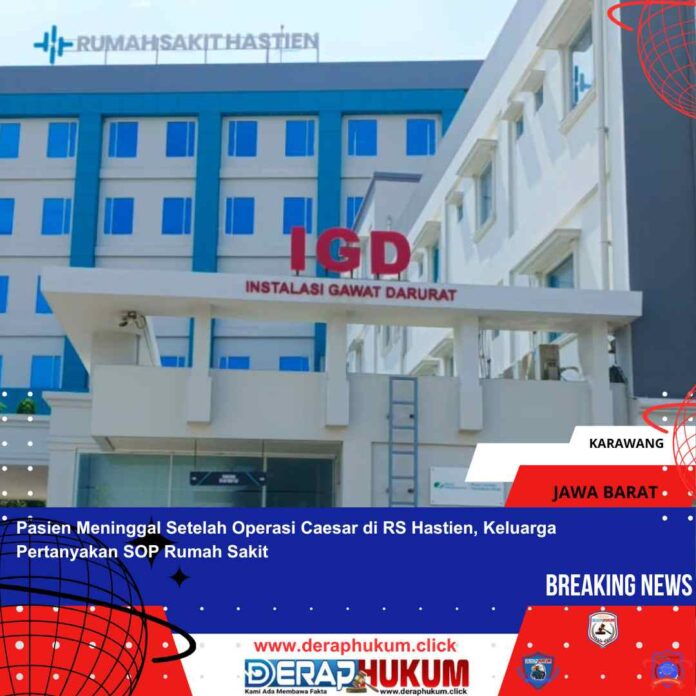 KARAWANG | Deraphukum.click | Seorang pasien yang baru saja menjalani operasi caesar di Rumah Sakit Hastien, Jl. Karyabakti No. 53, Rengasdengklok Utara, Kecamatan Rengasdengklok, mengalami sesak napas usai operasi pada Kamis (6/3/2025). Pasien sempat mendapat perawatan intensif di ICU RS Hastien sebelum akhirnya dirujuk ke Rumah Sakit Hasan Sadikin, Bandung, pada Sabtu malam (7/3/2025).
