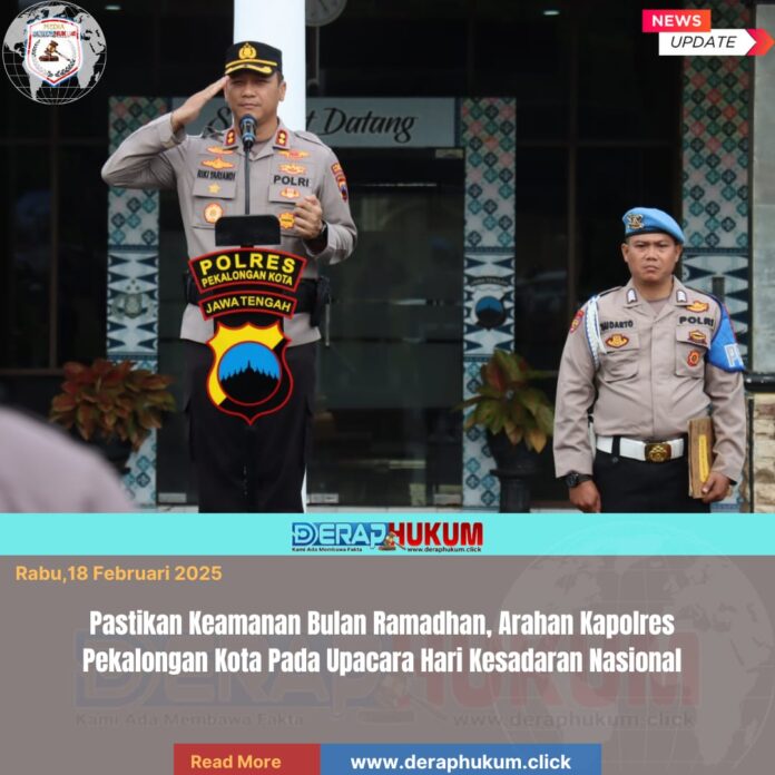 Pekalongan Kota, | Deraphukum.click | Polres Pekalongan Kota – Polda Jateng – Kepolisian Resor Pekalongan Kota, Polda Jateng menggelar Upacara Hari Kesadaran Nasional di halaman Mapolres, Jalan P. Diponegoro No. 19 Kota Pekalongan. Upacara yang berlangsung khidmat ini diikuti oleh seluruh pejabat utama (PJU), perwira, bintara, serta ASN Polres Pekalongan Kota, Rabu (18/2/2026).