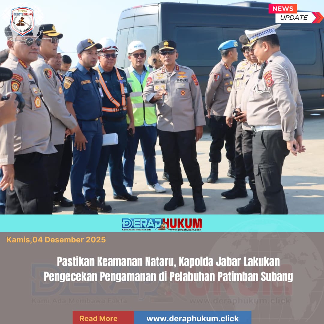 Subang,Jawa Barat l Deraphukum.click l Dalam rangka memastikan kesiapan pengamanan perayaan Natal 2025 dan Tahun Baru 2026, Kapolda Jawa Barat melakukan pengecekan langsung ke Pelabuhan Patimban, Kabupaten Subang, pada hari Rabu (3/12/2025).