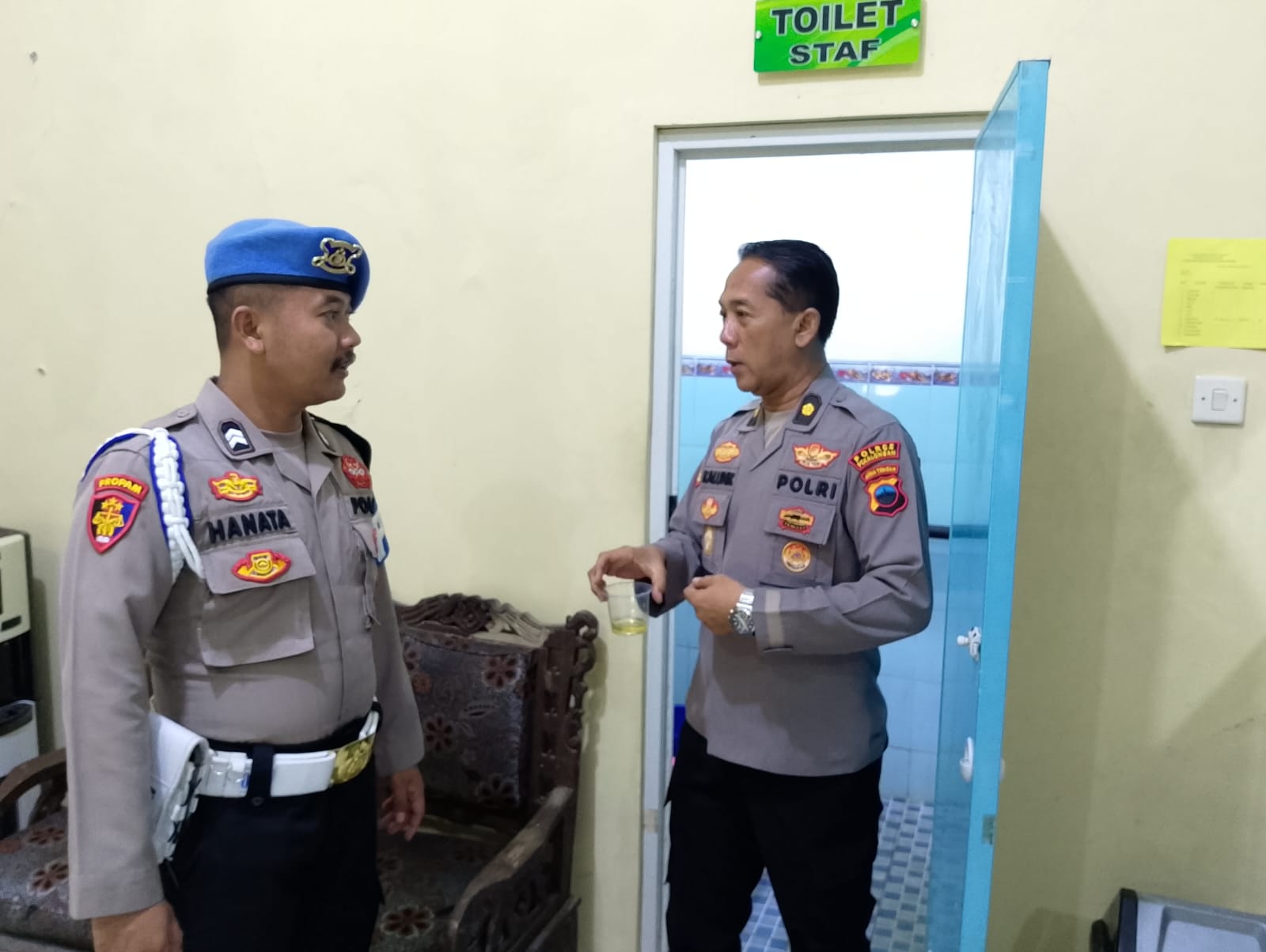 Kegiatan yang berlangsung di Mapolres Pekalongan ini dipimpin langsung oleh Plt. Kasi Propam Iptu Edi Santoso, S.H., M.H. Menariknya, tes urine ini tidak hanya menyasar bintara, namun jajaran pimpinan tertinggi pun turut menjadi yang pertama memberikan sampel urine mereka.