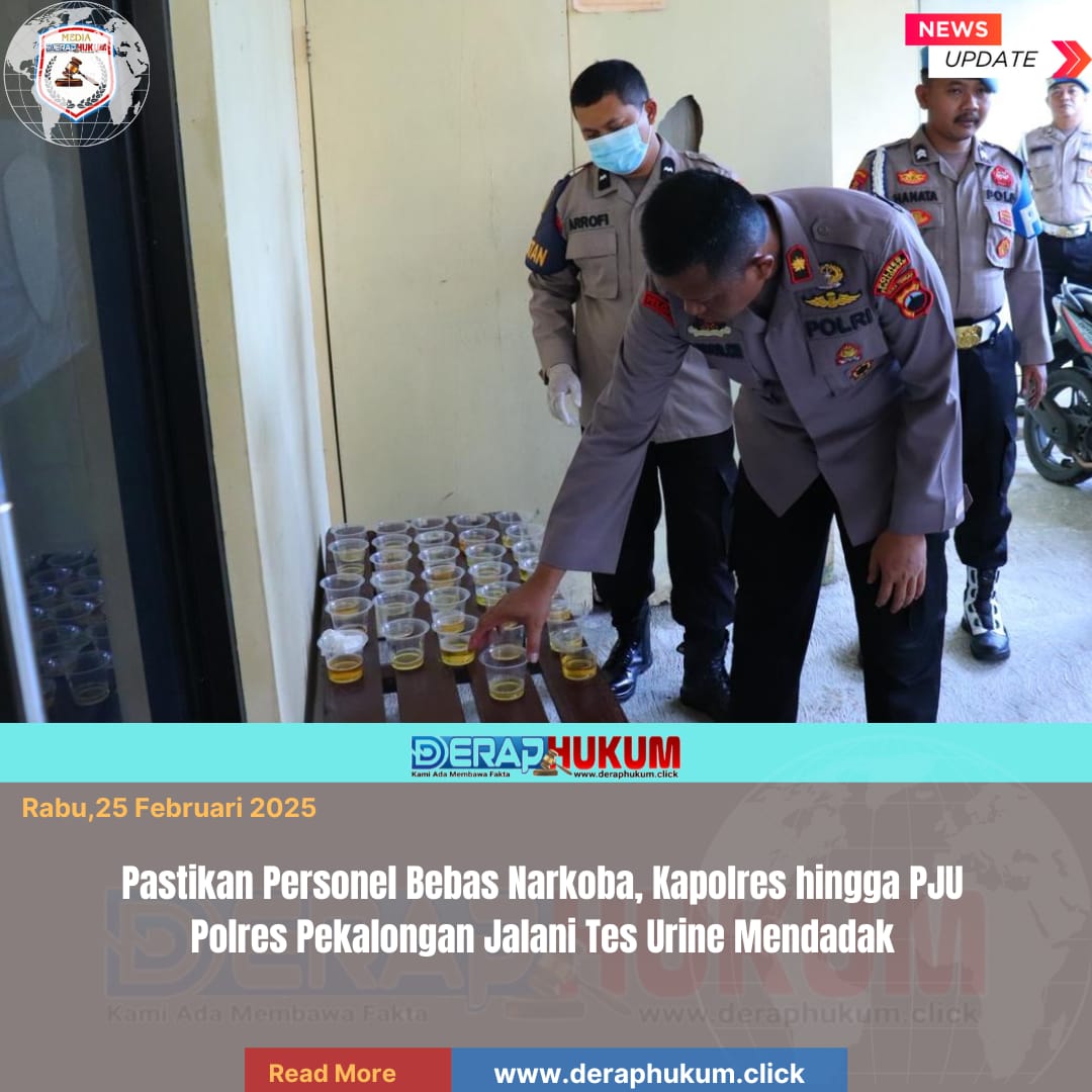 “Pada hari ini telah dilaksanakan kegiatan gaktibplin tes urine terhadap anggota Polres Pekalongan. Kegiatan ini merupakan bagian dari pengawasan internal untuk menjaga integritas institusi,” ujarnya saat dikonfirmasi.