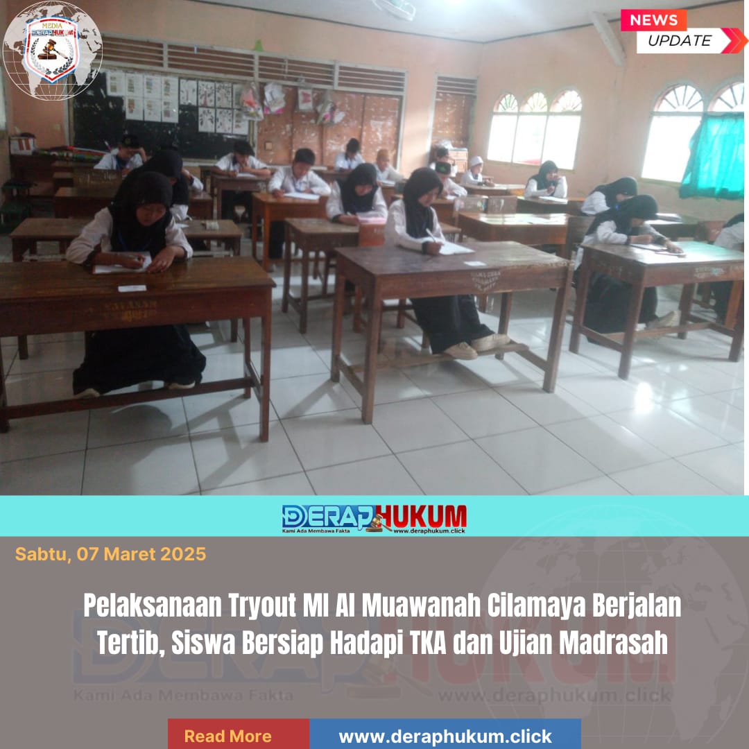 KARAWANG,Jawa Barat | Deraphukum.click | Pelaksanaan kegiatan tryout di MI Al Muawanah yang berlokasi di Desa Cilamaya, Kecamatan Cilamaya Wetan, Kabupaten Karawang berlangsung tertib, aman, dan kondusif. Kegiatan ini diikuti oleh para siswa dengan penuh keseriusan sebagai bagian dari persiapan menghadapi ujian yang akan datang.