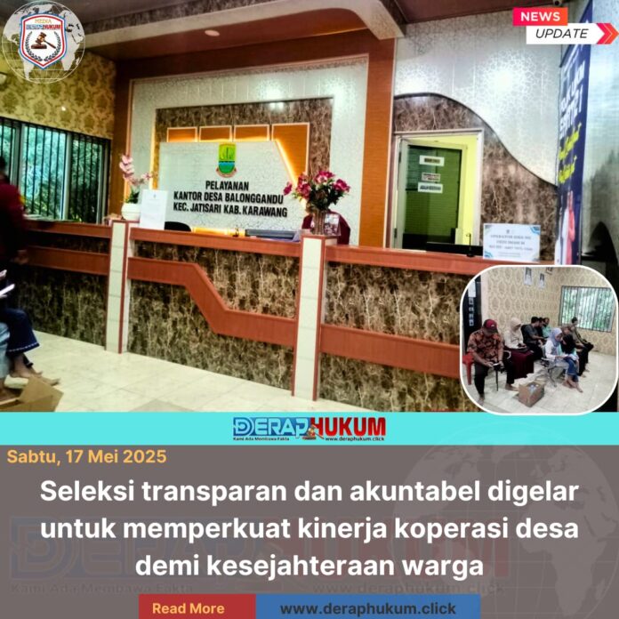 Karawang, Jawa Barat | Deraphukum.click | Pemerintah Desa Balonggandu, Kecamatan Jatisari, Kabupaten Karawang, menggelar rekrutmen terbuka untuk calon staf Koperasi Merah Putih yang beroperasi di wilayah desa tersebut. Proses seleksi yang berlangsung di kantor desa mendapat sambutan antusias dari pelamar dengan berbagai latar belakang.