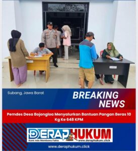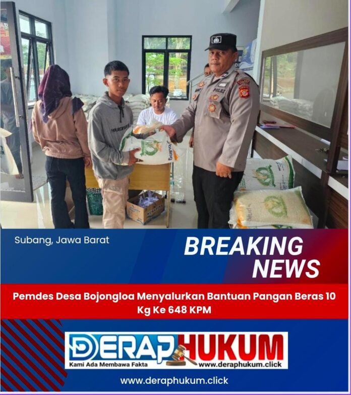 SUBANG | Deraphukum.click | Penyaluran bantuan pangan tahun 2024 berupa beras sebanyak 10kg di salurkan kepada 648 keluarga penerima mamfaat ( kpm ) diwilayah Desa Bojongloa kecamatan Kasomalang kabupaten Subang selasa (17/12/2024).