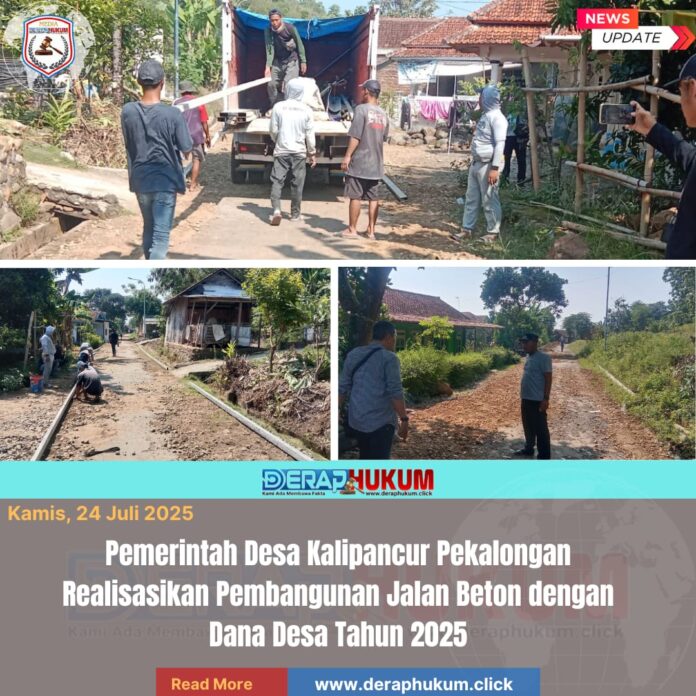 Pekalongan,Jawa Tengah | Deraphukum.click | 24/7/2025 ,Pemerintah Desa Kalipancur, Kecamatan Bojong, Kabupaten Pekalongan. Dengan memanfaatkan Dana Desa Tahun Anggaran 2025, pembangunan rabat beton di Dusun II mulai direalisasikan demi peningkatan aksesibilitas dan kesejahteraan masyarakat setempat.tadinya Kondisi infrastruktur jalan yang sebelumnya sempit dan sulit dilalui di Desa Kalipancur, ( 24/7/2025 )