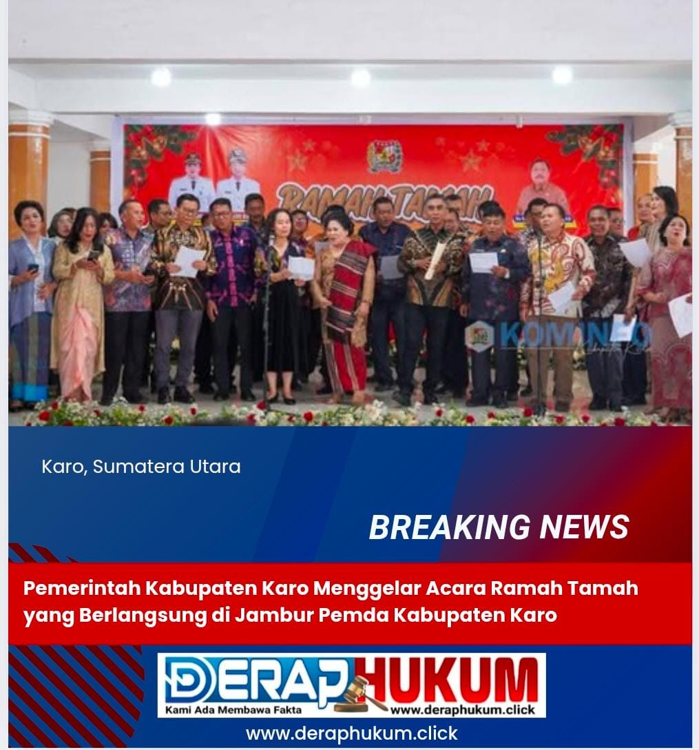 KABANJAHE-KARO | Deraphukum.click | Dalam rangka merayakan Natal 2024 dan menyambut Tahun Baru 2025, Pemerintah Kabupaten Karo menggelar acara Ramah Tamah yang berlangsung di Jambur Pemkab Karo, Jumat (10/01/2025).
