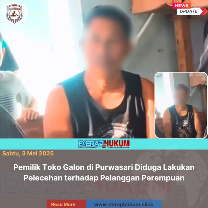 Karawang, Jawa Barat | Deraphukum.click | Sebuah insiden memprihatinkan terjadi di wilayah Purwasari, Kabupaten Karawang, pada Sabtu siang (3/5/2025). Seorang pemilik toko galon air minum diduga melakukan pelecehan terhadap pelanggan perempuan saat mengantar pesanan ke rumah korban.