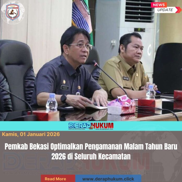 KAB. BEKASI, Jawa Barat | Deraphukum.click | Pemerintah Kabupaten Bekasi menggelar rapat antisipasi pengamanan Malam Tahun Baru 2026 bersama seluruh camat se-Kabupaten Bekasi, di Ruang KH. R. Ma’mun Nawawi, Gedung Bupati Lt. 2 Cikarang Pusat, pada hari Selasa (30/12/2025).