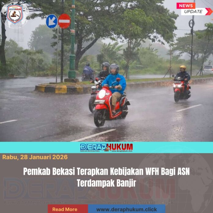 KAB. BEKASI, Jawa Barat | Deraphukum.click | Pemerintah Kabupaten Bekasi menerapkan skema Work From Home bagi Aparatur Sipil Negara yang akses rumah ke kantor terputus banjir untuk memastikan pelayanan publik tetap berjalan (26/1/2026).