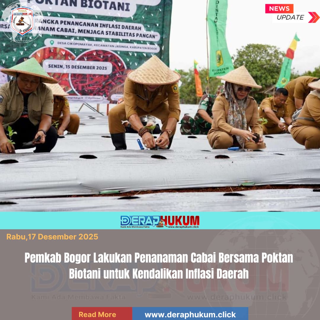 Bogor,Jawa Barat | Deraphukum.click | Pemerintah Kabupaten (Pemkab) Bogor terus memperkuat upaya pengendalian inflasi daerah melalui sektor pertanian. Salah satunya dengan melaksanakan penanaman cabai bersama Kelompok Tani (Poktan) Biotani di Kecamatan Jasinga, Kabupaten Bogor.