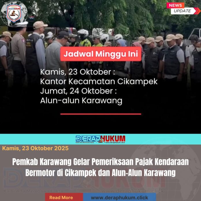 Karawang, Jawa Barat | Deraphukum.click | Pemerintah Kabupaten Karawang melalui kerja sama antara Bapenda Jawa Barat, Polres Karawang, dan Dinas Perhubungan, melaksanakan kegiatan pemeriksaan pajak kendaraan bermotor di wilayah Karawang.