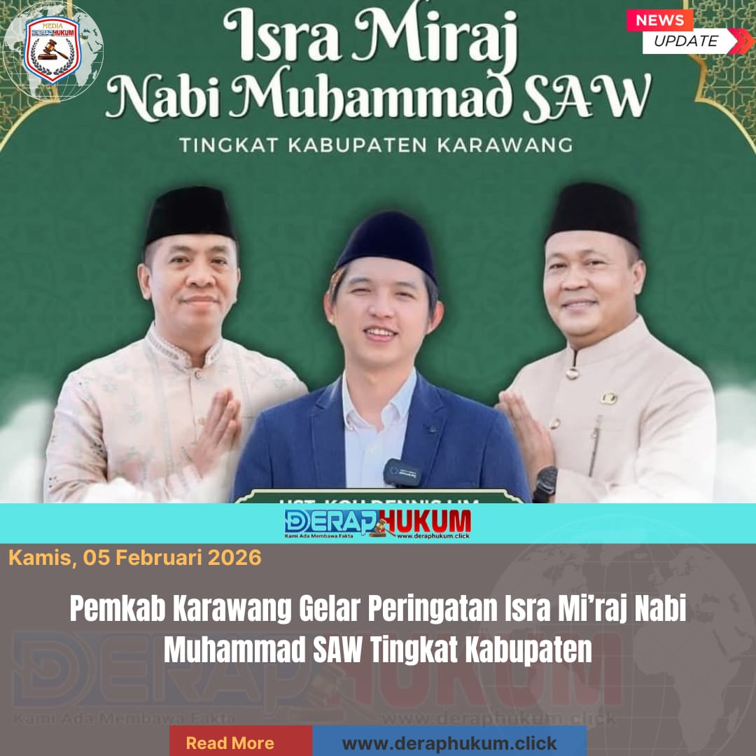 Karawang, Jawa Barat | Deraphukum.click | Pemerintah Kabupaten Karawang menggelar Peringatan Isra Mi’raj Nabi Muhammad SAW tingkat Kabupaten Karawang yang akan dilaksanakan pada Kamis, 6 Februari 2026, bertempat di Masjid Al Jihad Karawang.
