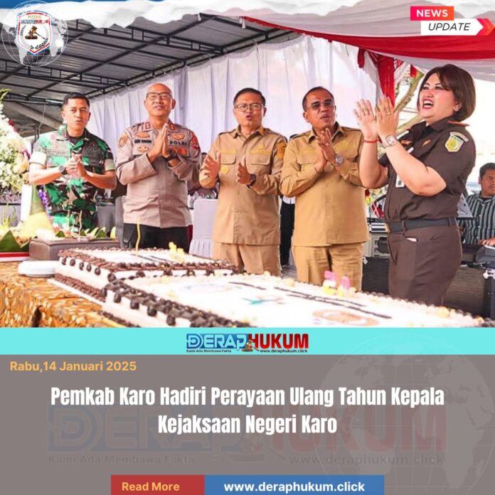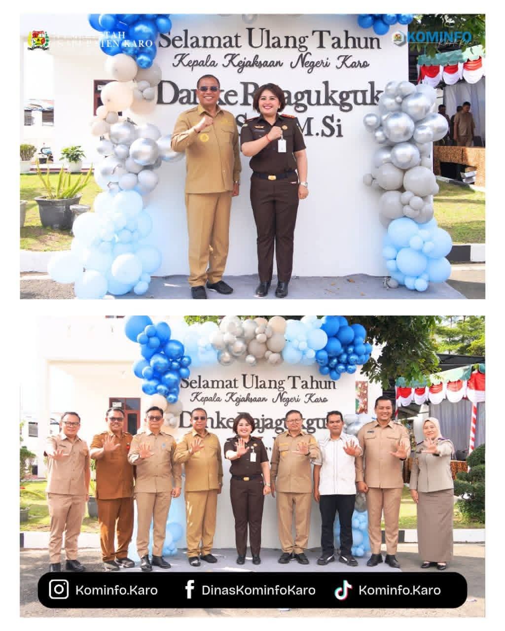 Pemerintah Kabupaten (Pemkab) Karo dalam hal ini selaku Bupati Karo, Brigjen Pol (Purn) Dr. dr. Antonius Ginting, Sp.OG., M.Kes., bersama Wakil Bupati Karo, Komando Tarigan, S.P., dan Sekretaris Daerah Kabupaten Karo, Gelora Kurnia Putra Ginting, S.STP., MM., hadiri Perayaan Ulang Tahun Kepala Kejaksaan Negeri Karo, Danke Rajagukguk, S.H., M.Si., ke-45 Tahun, sekaligus memberikan kejutan kue ulang tahun kepada Kepala Kejari Karo yang dilaksanakan di Rumah Dinas Kepala Kejaksaan Negeri Karo.