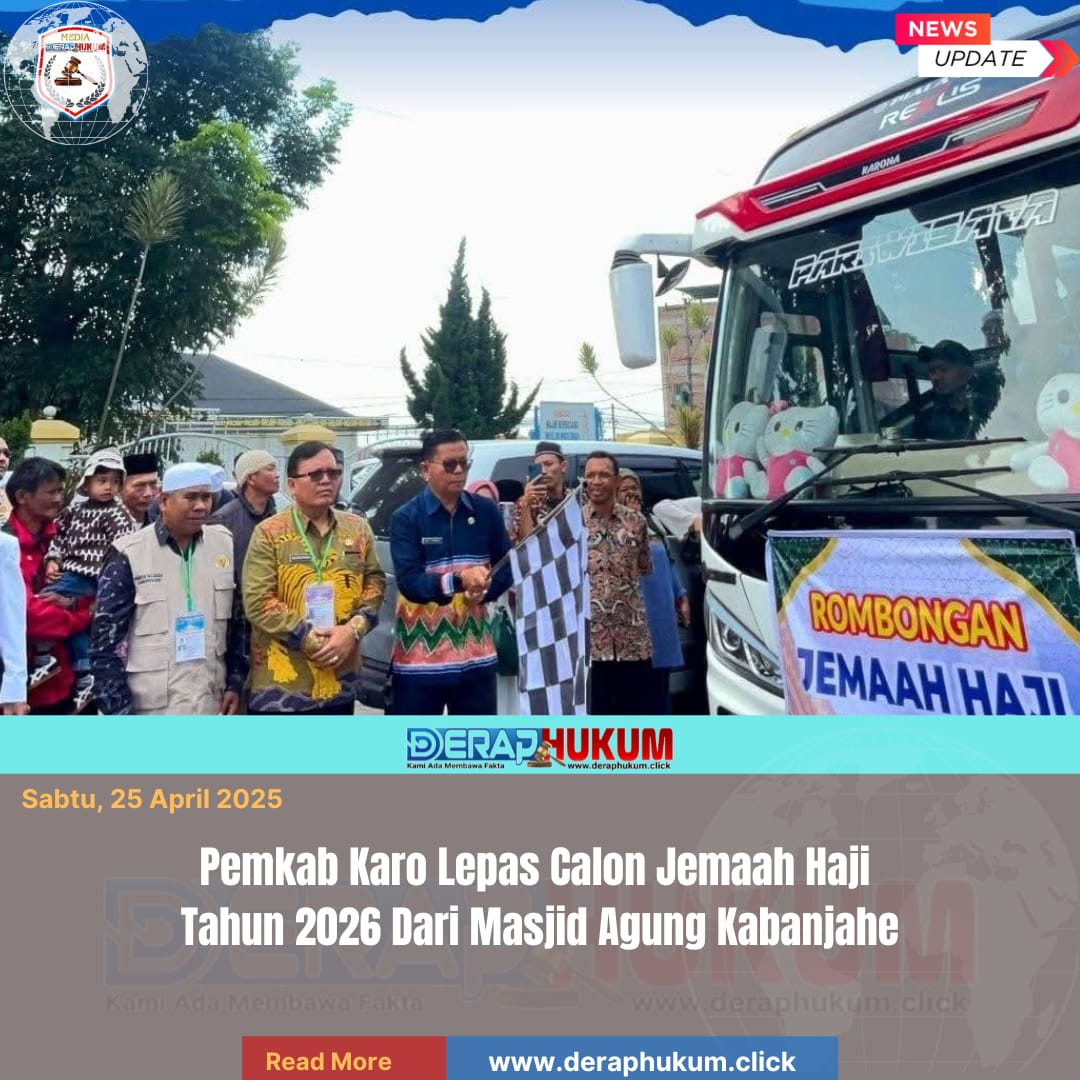 KARO, l Deraphukum.click l Bupati Karo, Brigjen Pol (Purn) Dr. dr. Antonius Ginting, Sp.OG, M.Kes., yang di wakilkan Staff Ahli Kesra, Dr. Drs. Eddi Surianta Surbakti, M.Pd dan Kesbangpol, Gelora Fajar Purba, S.H., M.H., melaksanakan pemberangkatan dan pelepasan Calon Jemaah Haji Kabupaten Karo Tahun 1447 Hijriah / 2026 Masehi yang berlangsung di Masjid Agung Kabanjahe, Jumat (24/04/2026) pukul 09.00 WIB.