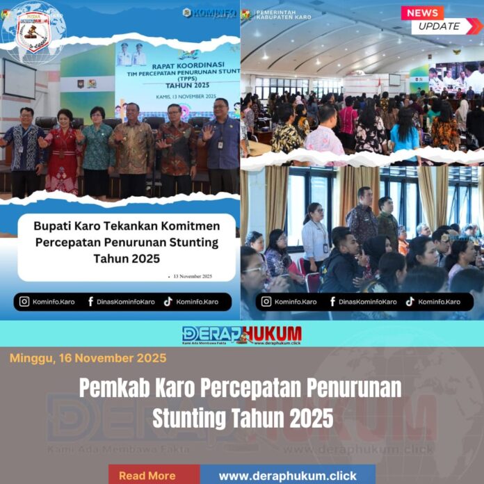 Bupati Karo Brigjen Pol (Purn) Dr. dr. Antonius Ginting, Sp.OG., M.Kes., menegaskan komitmen Pemerintah Kabupaten (Pemkab) Karo dalam mempercepat penurunan angka stunting di wilayahnya. Hal ini disampaikan saat membuka Rapat Koordinasi Tim Percepatan Penurunan Stunting (TPPS) Kabupaten Karo Tahun 2025, yang dilaksanakan di Aula Kantor Bupati Karo, pada Kamis kemarin (13/11/2025).