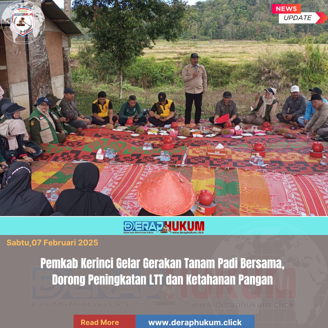 Kerinci, | Deraphukum.click | Pemerintah kabupaten Kerinci bersama dinas tph kabupaten Kerinci melakukan gerakan tanam padi bersama pada hari jumat februari /6/2026.dalam upaya penambahan luas tambah tanam (ltt) padi di kabupaten Kerinci bersama bapak bupati Kerinci dan bapak kadis tph kabupaten Kerinci di lokasi kelompok tani karya muda desa hiang karya kecamatan sitinjau laut