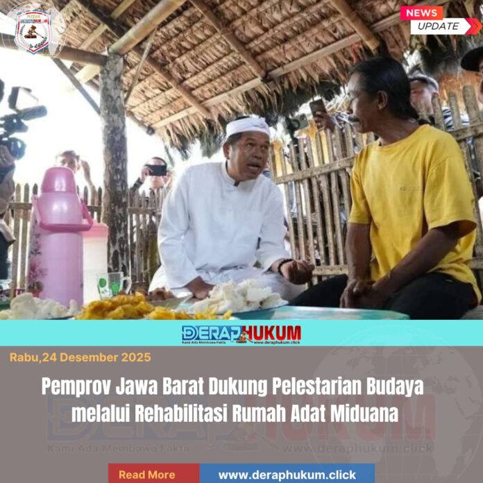 CIANJUR,Jawa Barat | Deraphukum.click | Pemerintah Provinsi Jawa Barat menyerahkan bantuan sosial kepada 22 penerima manfaat rehabilitasi rumah adat yang berada di Kampung Kubang Bodas, Kampung Adat Miduana, Kabupaten Cianjur. Penyerahan dilakukan secara langsung oleh Gubernur Jabar Dedi Mulyadi.