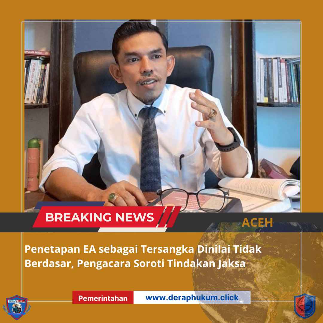 ACEH SELATAN,| Deraphukum.click | Kuasa hukum EA, Baiman Fahdli, SH, menilai bahwa penetapan kliennya sebagai tersangka dalam kasus dugaan tindak pidana korupsi pengadaan bibit kambing tahun 2021 tidak memiliki dasar hukum yang kuat. Menurutnya, EA tidak memiliki keterkaitan langsung dengan proyek tersebut, sehingga pertanggungjawaban pidana terhadapnya dianggap keliru.