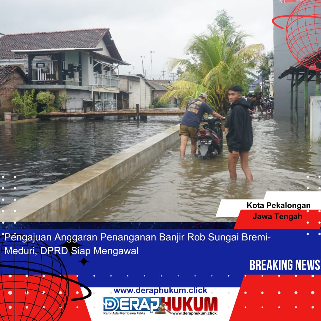 KOTA PEKALONGAN-JATENG | Deraphuukum.click | – Deraphukum – Pemerintah Kota (Pemkot) Pekalongan terus berupaya menuntaskan permasalahan banjir dan rob di Kota Pekalongan, salah satunya dengan mengusulkan anggaran ke Kementerian-PUPR untuk penanganan banjir dan rob di sepanjang aliran Sungai Bremi-Meduri, Tirto, Kecamatan Pekalongan Barat yang sampai saat ini masih sering melimpas ke pemukiman warga saat terjadi curah hujan dengan intensitas sedang hingga tinggi.