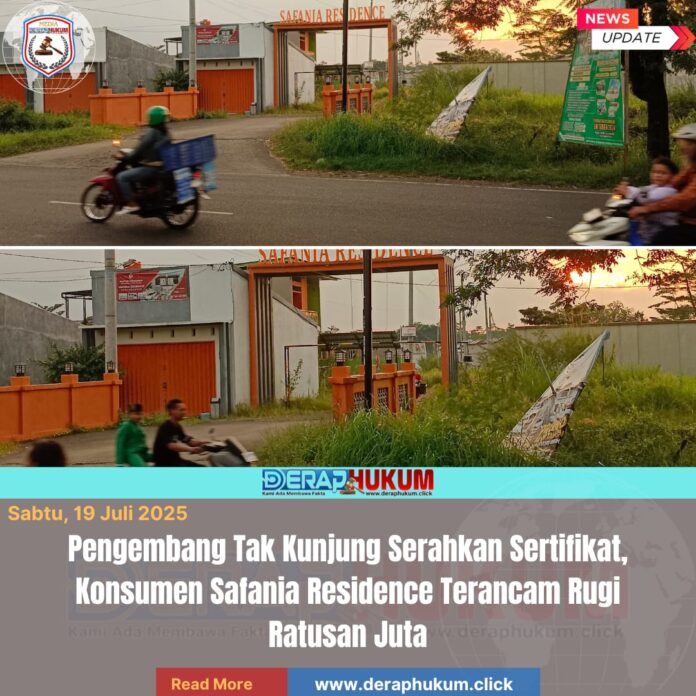 Pekalongan,Jawa Tengah | Deraphukum.click | 19 Juli 2025 – Seorang pengembang properti di Kabupaten Pekalongan, Sdr. Dori Yusro, diduga tidak memenuhi janji menyerahkan sertifikat tanah kepada konsumennya, Moh. Royan Rosyada, meskipun pembayaran tanah kavling telah lunas sejak Mei 2023. Kavling tanah tersebut berada di Desa Karangsari, Kabupaten Pekalongan.