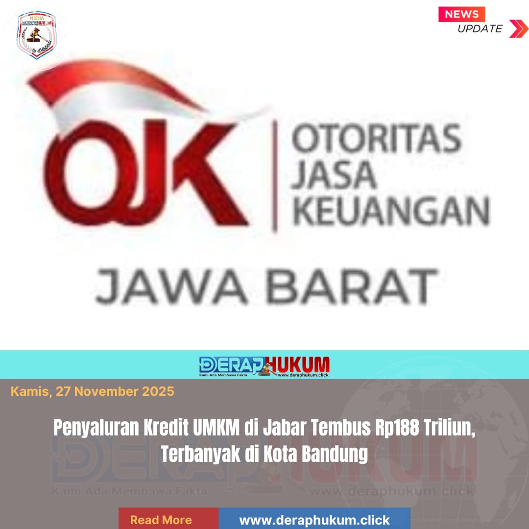 BANDUNG,Jawa Barat | Deraphukum.click | Otoritas Jasa Keuangan (OJK) Jawa Barat menyebutkan penyaluran Kredit UMKM hingga September 2025 mencapai Rp1.502,61 triliun.