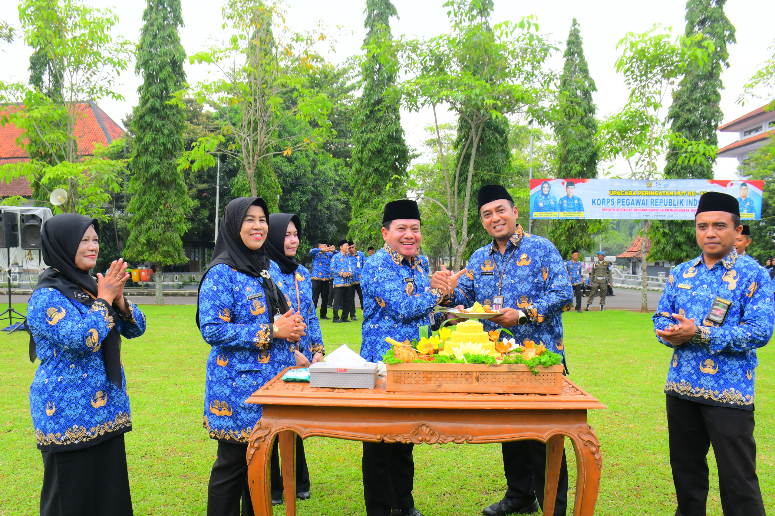 Upacara HUT Korpri diikuti seluruh ASN di lingkungan Pemerintah Kabupaten Pekalongan dan berlangsung khidmat serta lancar.