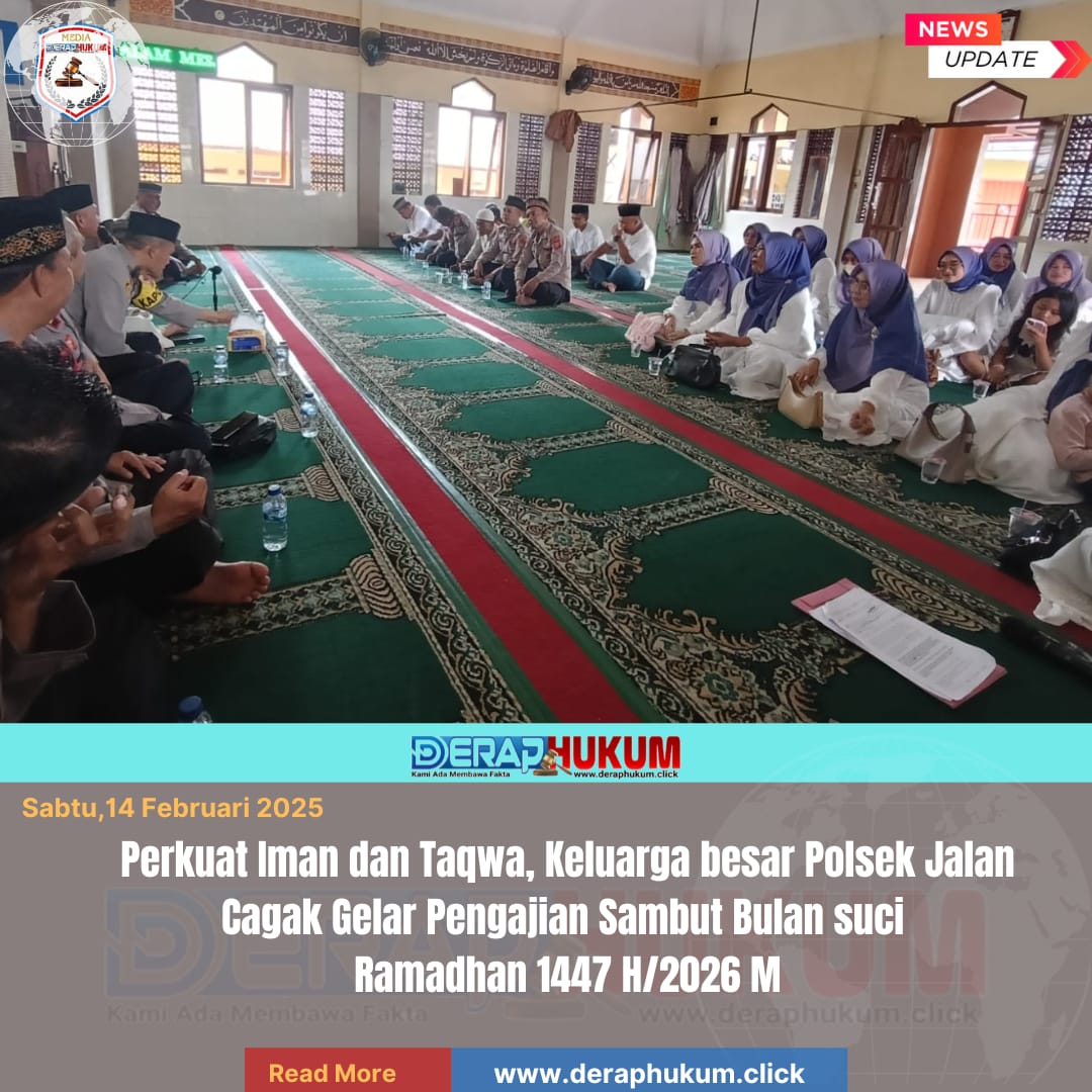 Subang,Jawa Barat l Deraphukum.click l Dalam rangka menyambut Bulan Suci Ramadhan 1447 H / 2026 M, serta menjalin silaturahim Keluarga Besar Polsek Jalan Cagak menggelar kegiatan pengajian yang berlangsung khidmat dan penuh kebersamaan di Mesjid Mako Polsek Jalan Cagak.sabtu (14/02/2026).