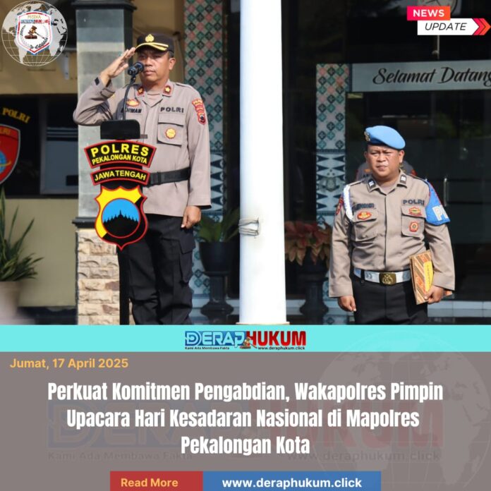 Pekalongan Kota, | Deraphukum.click | Polres Pekalongan Kota – Polda Jateng – Wakil Kepala Kepolisian Resor Pekalongan Kota Kompol Dr. Akhwan Nadzirin, S.H., M.H., bertindak sebagai Inspektur Upacara (Irup) dalam pelaksanaan Upacara Hari Kesadaran Nasional yang digelar di halaman Mapolres Pekalongan Kota , Jalan P. Diponegoro No. 19, Jumat (17/4/2026).