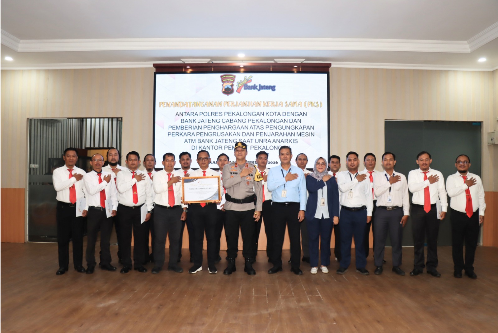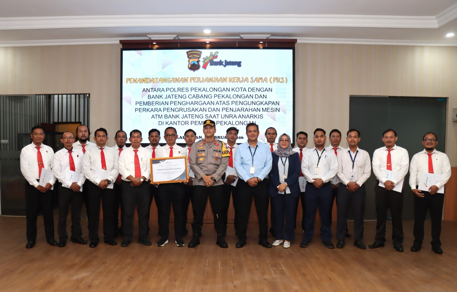 Perkuat Sinergi, Polres Pekalongan Kota dan Bank Jateng Teken PKS Sekaligus Penyerahan Penghargaan Ungkap Kasus Perusakan ATM Saat Unjuk Rasa Anarkis