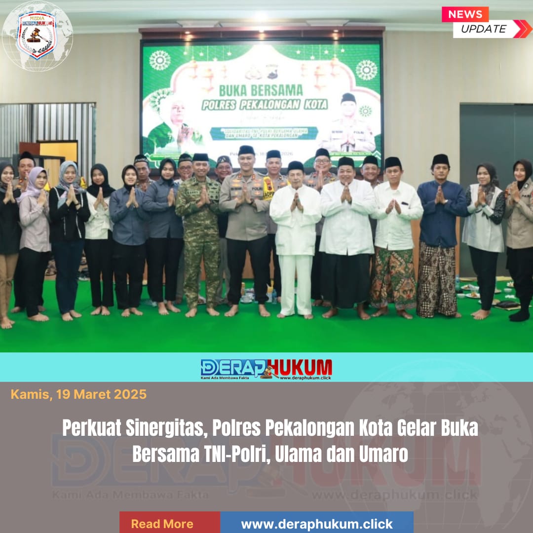 Pekalongan Kota, | Deraphukum.click | Polres Pekalongan Kota – Polda Jateng – Polres Pekalongan Kota menggelar kegiatan silaturahmi dan buka bersama Polres Pekalongan Kota dalam rangka soliditas TNI-Polri, dengan ulama, dan umaro se-Kota Pekalongan di bulan suci Ramadhan. Kegiatan berlangsung di Aula Wicaksana Laghawa Polres Pekalongan Kota, Rabu (18/3/2026) petang.