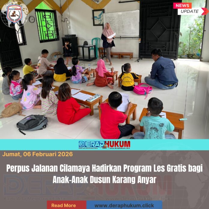 Karawang, Jawa Barat | DerapHukum.click | Perpus Jalanan Cilamaya kembali menunjukkan komitmennya dalam mendukung peningkatan kualitas pendidikan masyarakat dengan menghadirkan program les gratis Matematika dan Bahasa Inggris bagi anak-anak di Dusun Karang Anyar. Program tersebut direncanakan berlangsung selama satu tahun penuh sepanjang 2026.
