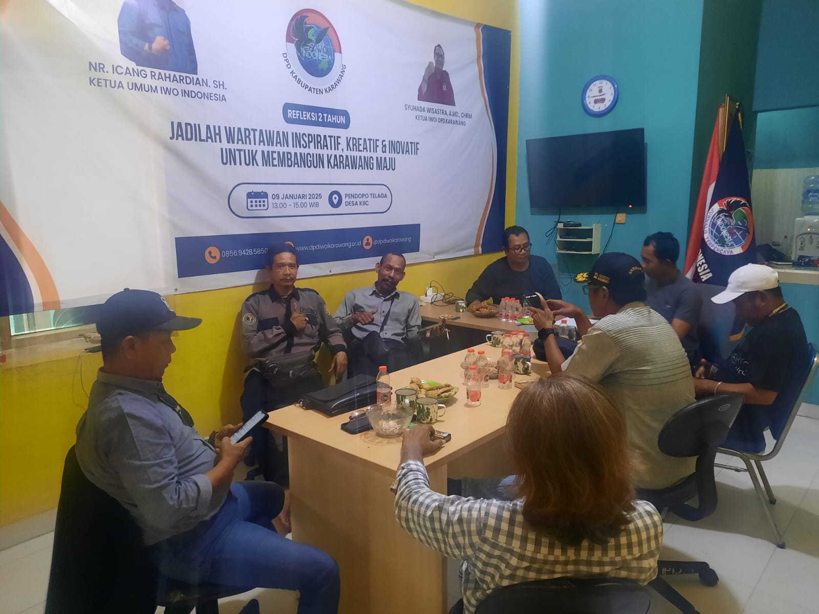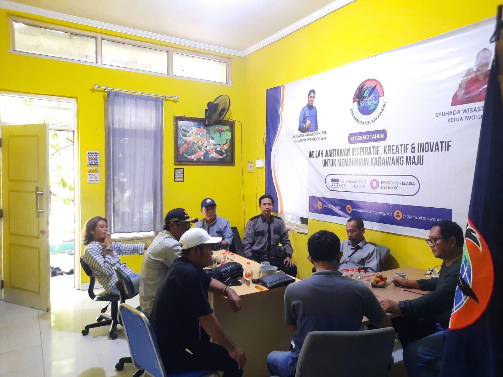 Rapat dipimpin langsung oleh Ketua IWOI DPD Karawang, Syuhada Wisastra, dan dihadiri Ketua Korwil Selatan Kasman, Ketua Korwil Kota Karnata, Ketua Korwil Utara Syarif Hidayat beserta Humas Dedi, Koordinator Humas dan Kerjasama Eksternal Muhammad Rifai, Ketua Korwil Cilamaya, serta jajaran pengurus lainnya.