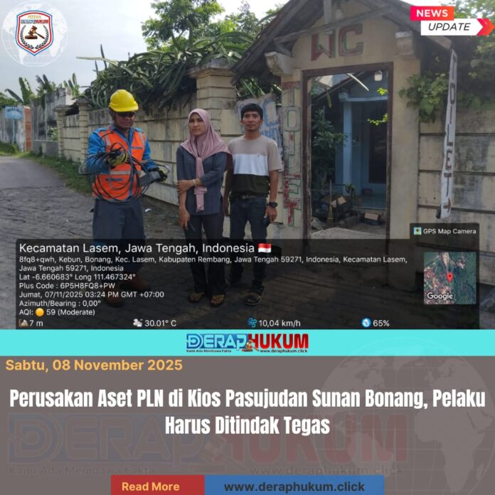 REMBANG, JAWA TENGAH | Deraphukum.click | Kasus pembongkaran kios di kawasan Pasujudan Sunan Bonang, Kabupaten Rembang, kian memanas. Peristiwa yang terjadi pada Kamis (7/11/2025) itu diduga melibatkan pihak Yayasan Sunan Bonang yang melakukan pembongkaran hanya bermodalkan Surat Peringatan (SP) 1.