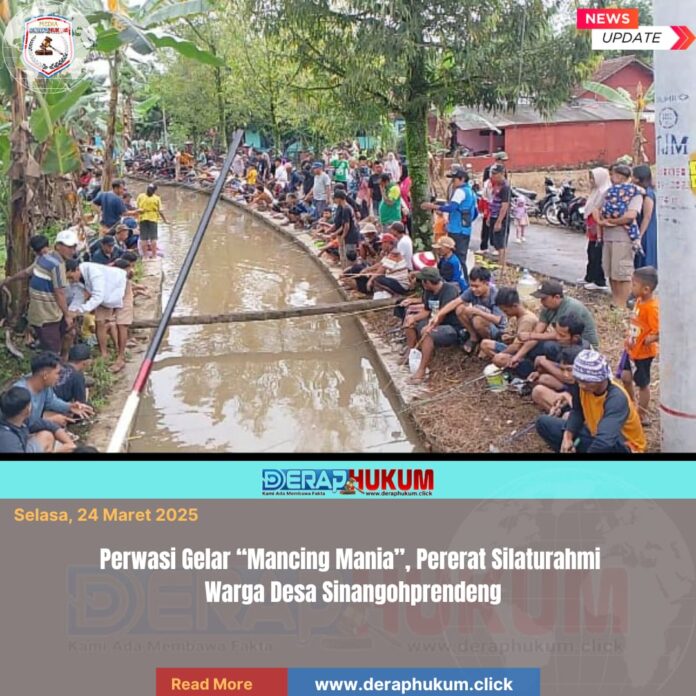 Pekalongan,Jawa Tengah | Deraphukum.click | Kegiatan Mancing Mania yang digelar oleh Perwasi bersama warga Desa Sinangohprendeng, Kecamatan Kajen, Kabupaten Pekalongan berlangsung meriah pada Minggu (22/3/2026) di Kali Bagong Sekitar Masjid Baitussalam. Kegiatan ini menjadi ajang hiburan masyarakat dalam rangka menyambut Hari Raya Idul Fitri 1 Syawal 1447 H, sekaligus sarana mempererat tali silaturahmi antarwarga di lingkungan desa.