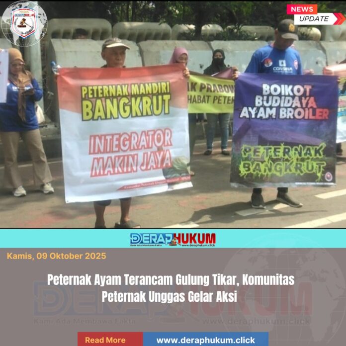 Jakarta, | Deraphukum.click | Puluhan Peternak Ayam yang tergabung di Komunitas Peternak Unggas Nasional (KPUN) menggelar aksi bagi-bagi bibit anak ayam sebanyak 1500 ekor, aksi tersebut bentuk kekecewaan terhadap kebijakan pemerintah yang mengatur peternak mandiri.