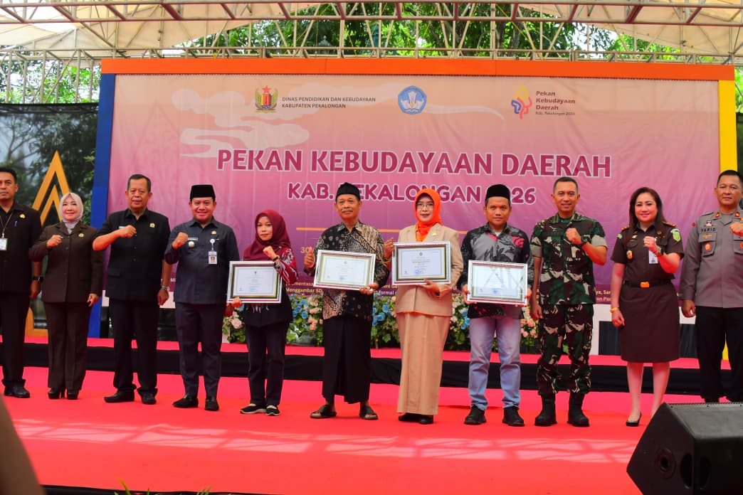 Dalam kesempatan itu, Plt. Bupati Pekalongan beserta Forkopimda menyerahkan penghargaan nasional atas kekayaan warisan budaya yang ditetapkan sebagai Warisan Budaya Takbenda (WBTb) Indonesia, yaitu Seni Sintren, Apem Kesesi, Seni Gendhuwangan, Tata Rias Pengantin Srimpi Priyayi, serta Selamatan Giling Tebu PG Sragi.