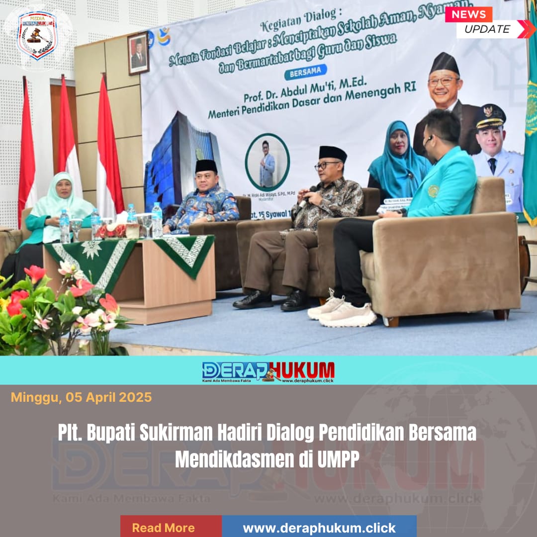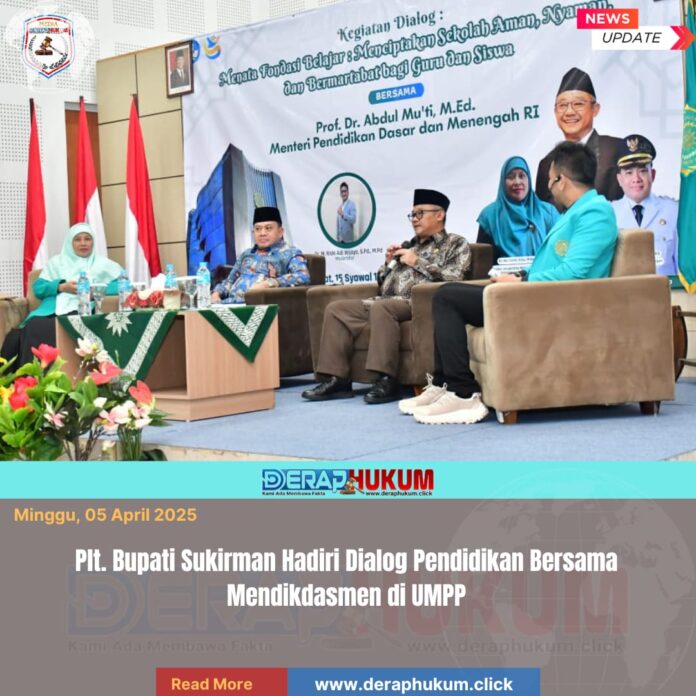 Kajen, | Deraphukum.click | Pelaksana Tugas (Plt.) Bupati Pekalongan, Sukirman menghadiri kegiatan dialog pendidikan bertema “Menata Pondasi Belajar: Menciptakan Sekolah Aman, Nyaman, dan Bermartabat bagi Guru dan Siswa” yang digelar di Universitas Muhammadiyah Pekajangan Pekalongan (UMPP), Kedungwuni, Jum’at (03/04/2026).