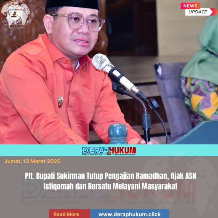 Pekalongan,Jawa Tengah | deraphukum.click | Pelaksana Tugas (Plt.) Bupati Pekalongan, Sukirman secara resmi menutup rangkaian kegiatan Pengajian Jum’at Pagi Ramadhan, di Aula Lantai I Setda Kabupaten Pekalongan, Jum’at (13/03/2026) pagi.