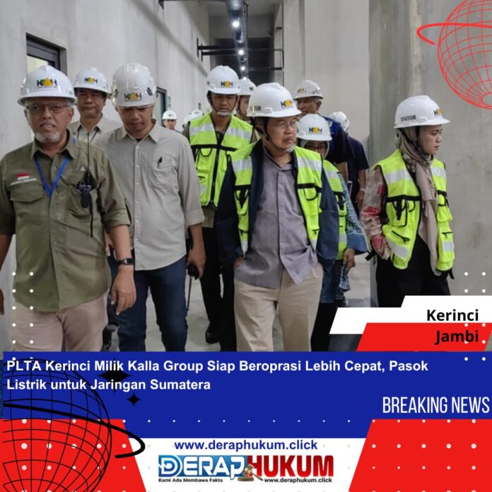 KERINCI-JAMBI | Deraphukum.click | – Pembangkit Listrik Tenaga Air (PLTA) Kerinci yang dikelola oleh PT Kerinci Merangin Hydro (KMH), bagian dari Kalla Group, dipastikan akan segera beroperasi dan mulai mengalirkan listrik ke jaringan PLN pada Maret 2025.