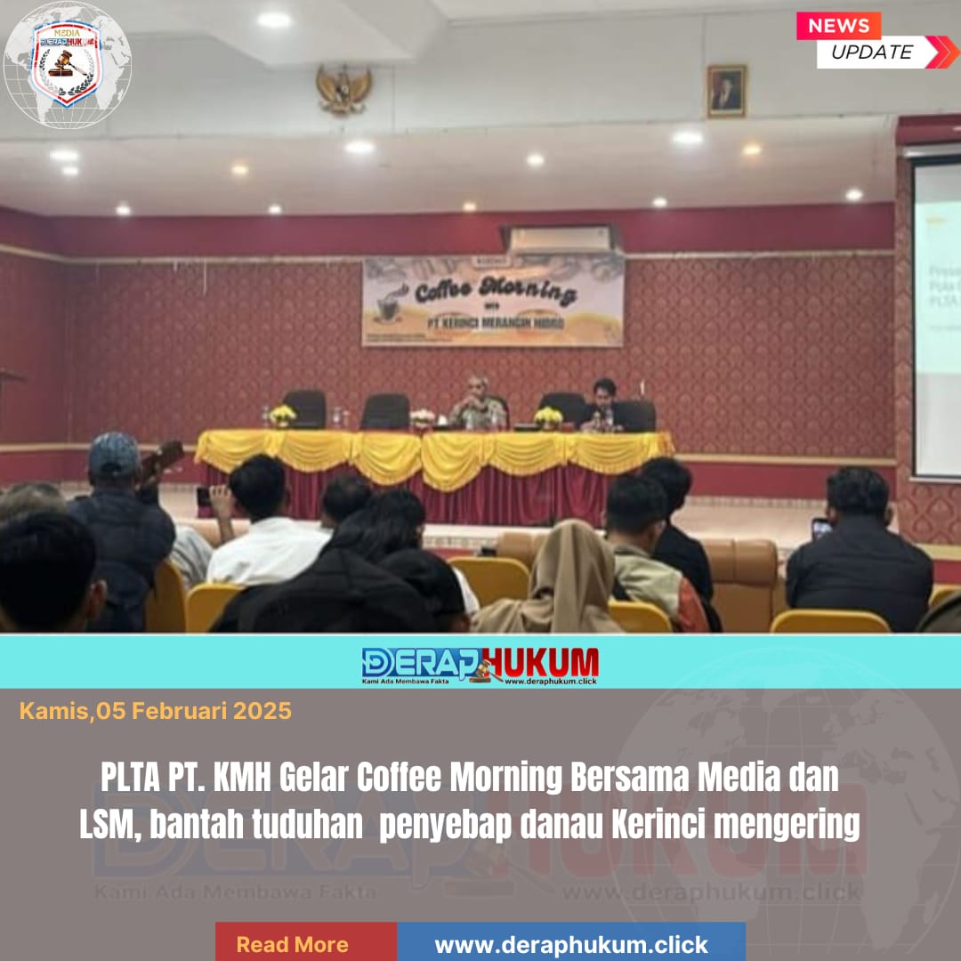 Kerinci, | Deraphukum.click | PT Kerinci Merangin Hidro (PT. KMH) menggelar kegiatan Coffee Morning bersama awak media dan LSM se-Kabupaten Kerinci dan Kota Sungai Penuh. Kegiatan tersebut berlangsung di Aula Hotel Mahkota, Kota Sungai Penuh, Kamis (05/02/2026).