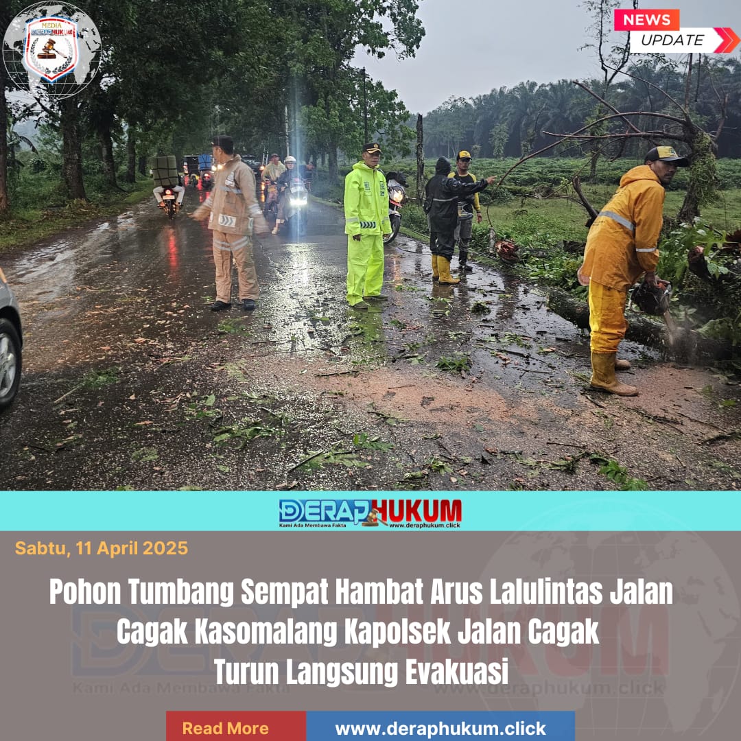 Subang,Jawa Barat l Deraphukum.click l Curah hujan tinggi di wilayah Kabupaten Subang khsusnya wilayah jalan cagak memicu terjadinya Pohon tumbang.pada hari jumat ( 10/04/2026 ).