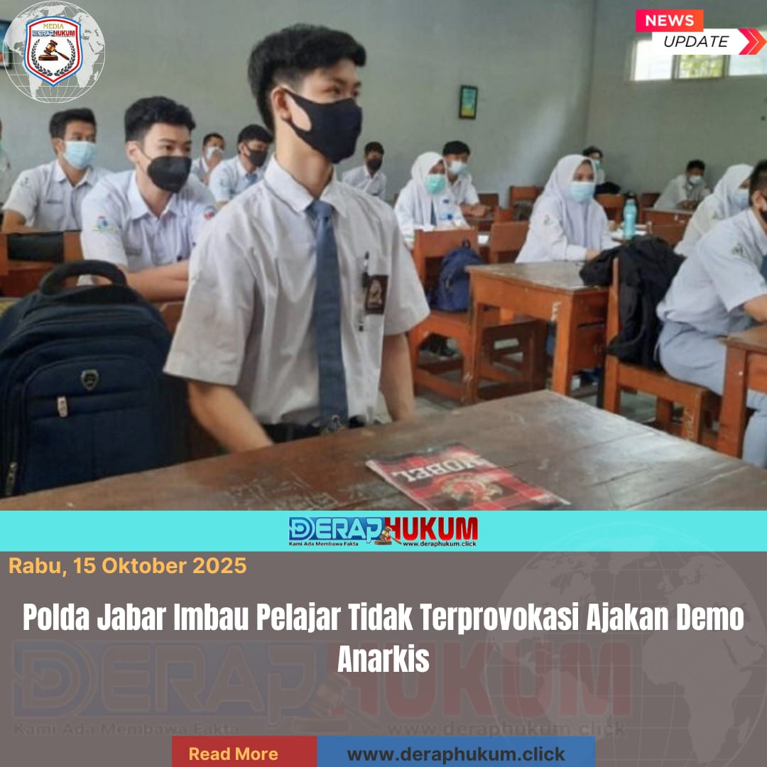 | Deraphukum.click | Kepolisian Daerah Jawa Barat (Polda Jabar) mengimbau Dinas Pendidikan Provinsi Jawa Barat untuk memperkuat pembinaan terhadap para siswa, terutama di wilayah yang dinilai rawan terprovokasi ajakan mengikuti aksi unjuk rasa ke Jakarta.