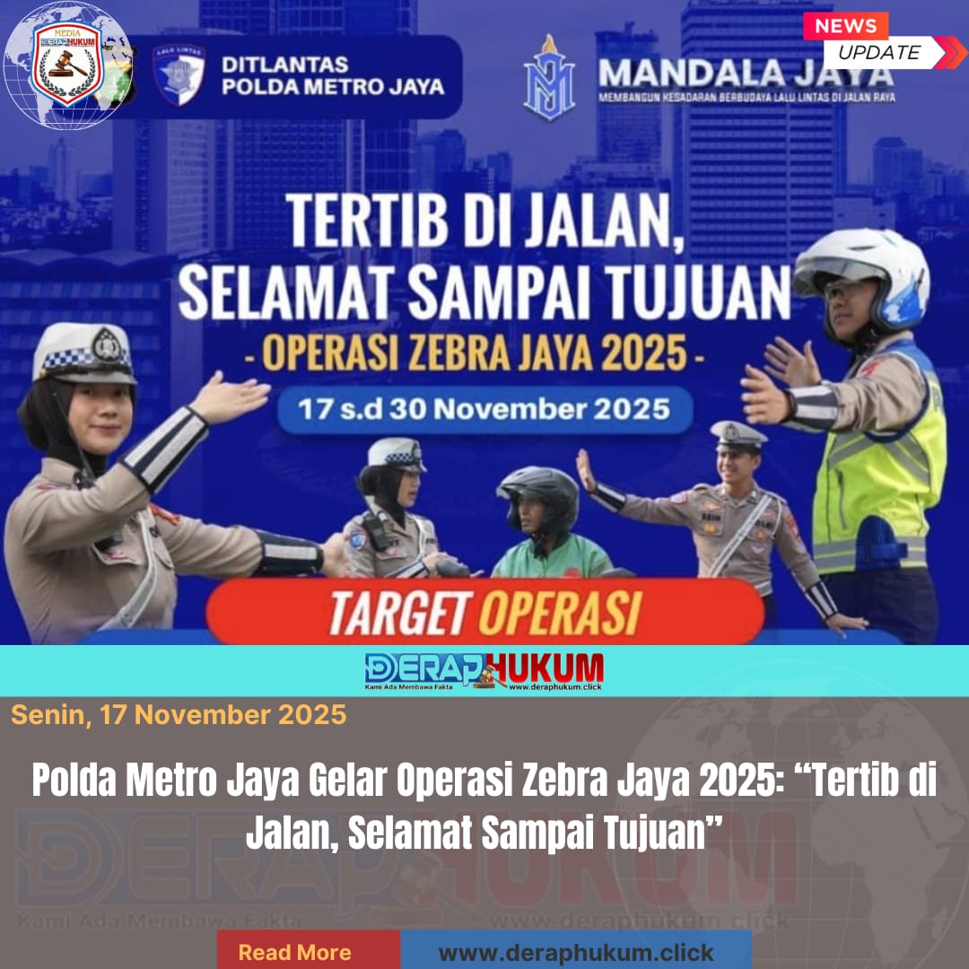 Suara sirene kembali terdengar di berbagai sudut Ibu Kota. Bukan untuk menakut-nakuti, tetapi mengingatkan bahwa keselamatan di jalan raya adalah urusan hidup dan mati. Direktorat Lalu Lintas Polda Metro Jaya resmi menggelar Operasi Zebra Jaya 2025 mulai 17 hingga 30 November 2025, dengan mengusung pesan: “Tertib di Jalan, Selamat Sampai Tujuan.”